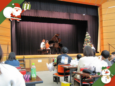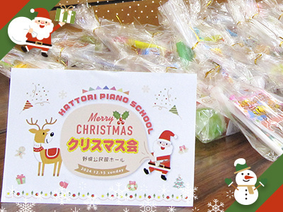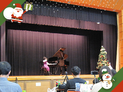 小学生以下の生徒さんたちの交流の場として開催しています。前半は演奏会でお菓子を食べながら皆さんの演奏を楽しみます。後半は交流会でゲームをして交流を図っています。日頃のレッスンは個人なので、生徒さん同士が知り合う機会もほとんどなく、発表会で会って顔を知っていてもなかなか話したりできないことが多いです。クリスマス会で交流し、刺激を受けたり、発表会でも仲間意識を感じることで、会が少しでも和み、より楽しいものになったらいいなと思って毎年開催しています。