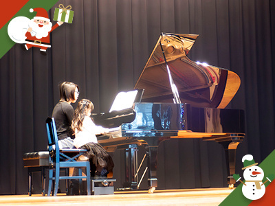 小学生以下の生徒さんたちの交流の場として開催しています。前半は演奏会でお菓子を食べながら皆さんの演奏を楽しみます。後半は交流会でゲームをして交流を図っています。日頃のレッスンは個人なので、生徒さん同士が知り合う機会もほとんどなく、発表会で会って顔を知っていてもなかなか話したりできないことが多いです。クリスマス会で交流し、刺激を受けたり、発表会でも仲間意識を感じることで、会が少しでも和み、より楽しいものになったらいいなと思って毎年開催しています。
