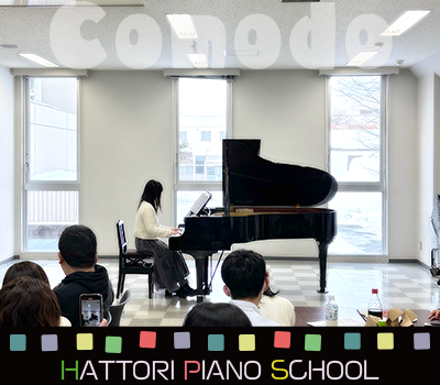 今年からクリスマス会と分けて中学生以上の生徒さんが参加する交流会Comodo(コモド)を開催しました。参加された皆様お疲れ様でした。残念ながら1名欠席となってしまいましたが、演奏された生徒さん8名、ご家族を含めた参加者19名で、皆様と楽しい時間を過ごすことができました。 前半はお菓子を食べながら皆さんの演奏を楽しむ演奏会をしました。皆さん定期的にある試験勉強や部活や塾など忙しい日々の中、練習に取り組んでくれました。何度経験しても本番は緊張するものですが、うまくコントロールしてしっかりと演奏できていて素晴らしかったです。今年は、私も皆さんのイベントで演奏させていただいていて、コモドでも演奏しました。私も緊張の中での演奏でしたが、久しぶりに本番へ向けての練習や本番での自分のコントロールなど改めて色々と勉強させていただく機会となりました。後半は交流会でゲームとビンゴをして楽しみました。少人数の会なのでご家族の皆様にも参加していただき全員でゲームをしました。ゲームは好評でみんなで盛り上がることができて嬉しかったです。会場作りから片付けまで、ご家族の皆様にお手伝いいただき、トラブルもなくとてもスムースに会を進行することができました。ご家族の皆様ご協力ありがとうございました。