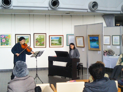 昨年に引き続き美馬恭子さんの絵画個展最終日のミニコンサートでビオラの坂東恵子さんと演奏させていただきました。