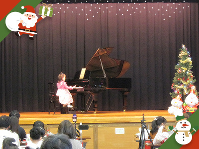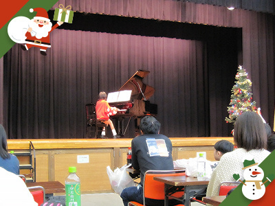 小学生以下の生徒さんたちの交流の場として開催しています。前半は演奏会でお菓子を食べながら皆さんの演奏を楽しみます。後半は交流会でゲームをして交流を図っています。日頃のレッスンは個人なので、生徒さん同士が知り合う機会もほとんどなく、発表会で会って顔を知っていてもなかなか話したりできないことが多いです。クリスマス会で交流し、刺激を受けたり、発表会でも仲間意識を感じることで、会が少しでも和み、より楽しいものになったらいいなと思って毎年開催しています。