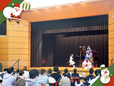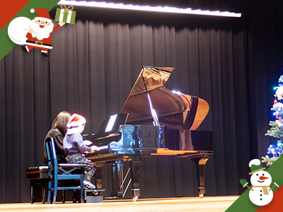 小学生以下の生徒さんたちの交流の場として開催しています。前半は演奏会でお菓子を食べながら皆さんの演奏を楽しみます。後半は交流会でゲームをして交流を図っています。日頃のレッスンは個人なので、生徒さん同士が知り合う機会もほとんどなく、発表会で会って顔を知っていてもなかなか話したりできないことが多いです。クリスマス会で交流し、刺激を受けたり、発表会でも仲間意識を感じることで、会が少しでも和み、より楽しいものになったらいいなと思って毎年開催しています。